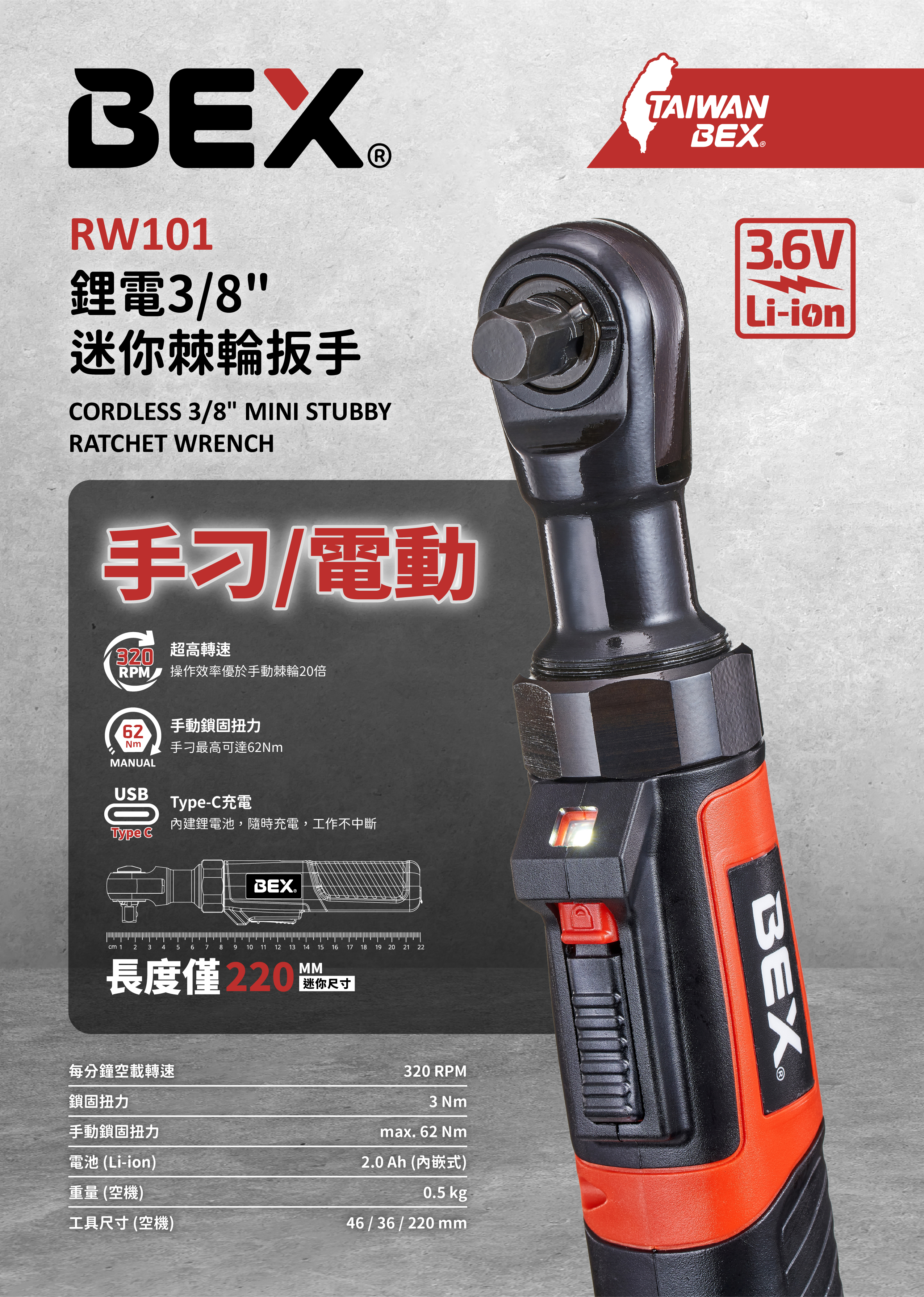 | 尺寸 (空機) | 46 / 36 / 220 mm |
