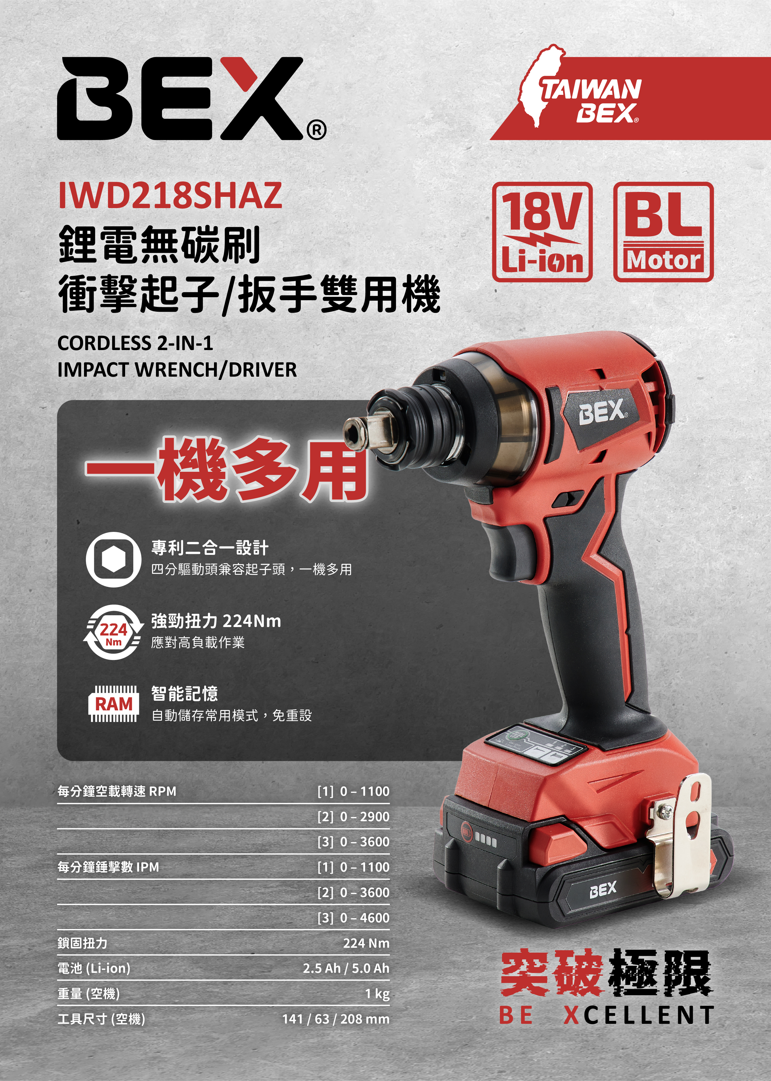 - 強勁扭力 224Nm,應對高負載作業